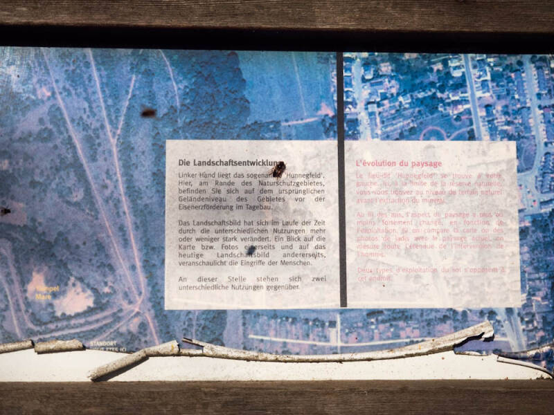 Und Tschüss old Germany - Moien Letzebuerg, ab nach Luxemburg. Heutiges Ziel war ein Parkplatz an der Fond de Gras. Das liegt südlich von Petingen am Rande eines Naturschutzgebietes. Dieses entstand durch den ehemaligen Bergbau, sowohl Untertage als auch Übertage. Der ehemalige Tagebau wurde der Natur 1978 überlassen. Seitdem gestaltet sie diese Gegend neu. Die damals genutzten Gleise, Verladebahnhöfe und diverse Maschinen zum Abbau des Eisenerzes und die Stahlherstellung werden am Ende der Fond de Gras ausgestellt und können besichtigt werden.