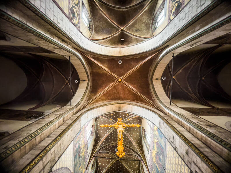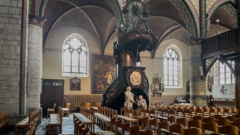 Ein Besuch der Sint-Salvatorskathedraal, diese ist Brügges älteste Pfarrkirche und seit 1834 die Kathedrale des Bistums Brügge, ergab sich zufällig. Ihr Bau dauerte Jahrhunderte, was zu einer Mischung verschiedener gotischer Stile führte. Äußerlich ist sie eine beeindruckende Backsteinbasilika mit einem markanten Turm. Im Inneren finden sich ein spätgotisches Chorgestühl, barocke Wandteppiche, eine bedeutende Orgel und Glasfenster. Die angeschlossene Schatzkammer beherbergt wertvolle religiöse Kunstwerke altflämischer Meister und Goldschmiedearbeiten. Sie ist ein wichtiges historisches und künstlerisches Denkmal der Stadt.