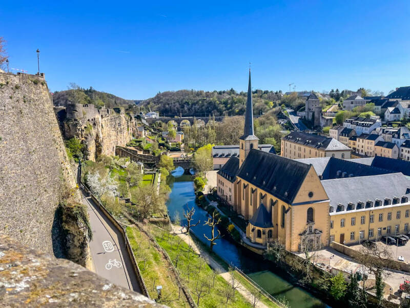 Aus der Natur zurück in die (laute) Großstadt. Mit dem kostenlosen Bus ins Zentrum von Luxemburg. Eine fantastische Stadt. Besonders beeindruckend ist die Altstadt. Diese ist seit 1994 Weltkulturerbe. Vom Corniche, dem schönsten Balkon Europas, hat man einen herrlichen Ausblick auf das Stadtviertel „Grund“ mit der Johanneskirche, dem Geschichtsmuseum und den vielen kleinen Häusern sowie auf das Europaviertel mit seinen riesigen Wolkenkratzern. Es hat schon was Beeindruckendes auf der selben Höhe mit einer Kirchturmspitze zu stehen. Die Nähe des Flughafens war immer präsent, da die ankommenden Flieger sehr niedrig über die Stadt flogen. Wir konnten auch eine Wachablösung am Sitz des Großherzogs beobachten. Nach einem Besuch der Kirche Notre-Dame (die gibt es auch in Luxemburg) mit ihren drei markanten Kirchturmspitzen und der Gruft der Großherzogsfamilie fuhren wir wieder mit dem Bus zu unserem mobilen Heim. Wir ließen den Tag mit einem Glas Elbling ausklingen. Der Elbling ist ein typischer Weißwein für Luxemburg, aus einer der ältesten Rebsorten der Welt.