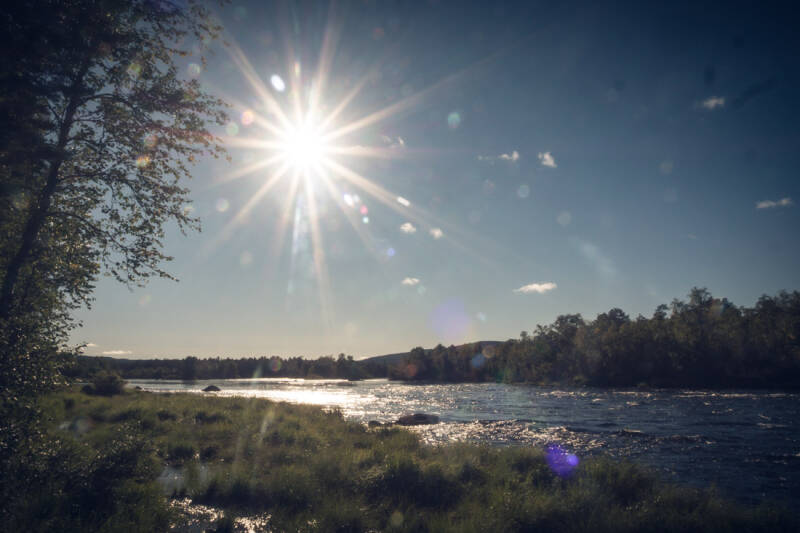 In Inari fanden wir einen wunderbar ruhigen Übernachtungsplatz direkt am Fluss Juutuanjoki. Er lag tief im Wald und war nur von ein paar anderen finnischen Campern besucht. Absolute Stille. Im Bereich von Inari hat der Juutuanjoki auch einige Stromschnellen, die durch einen sehr gut ausgebauten, etwa acht Kilometer langen Rundweg erschlossen sind. Diesen Weg sind wir gleich noch gewandert. Die Sonne war herrlich und am Wegesrand standen überall wunderschöne Fliegenpilze. Eine wirklich entspannte Wanderung.