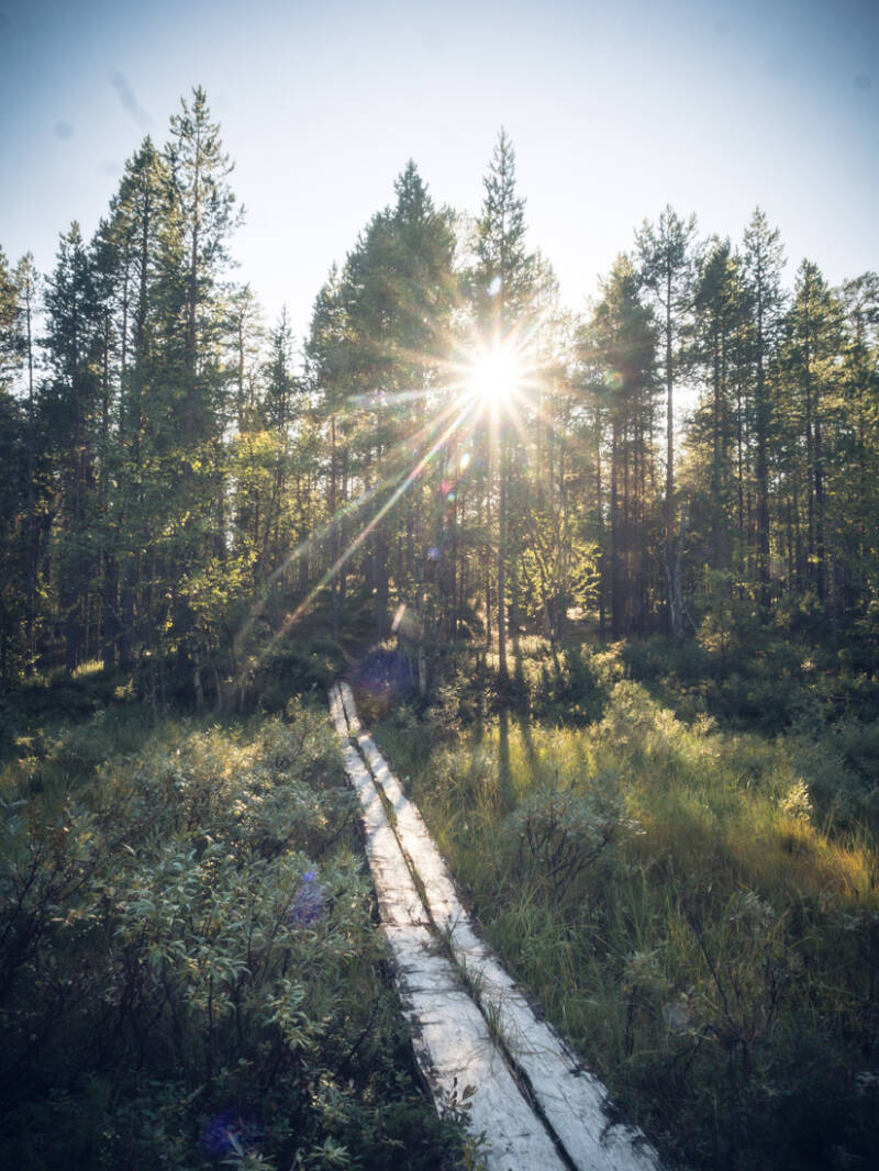 Unsere erste Rast machten wir auf einem Parkplatz direkt an einem See. Die Sonne strahlte – genau so, wie man sich Finnland vorstellt: endlose Wälder, weite Moore und unzählige Seen. Im Vergleich zu den norwegischen Straßen war die Fahrt hier sehr entspannend. Es ging fast nur geradeaus, und jede Kurve konnte man schon von Weitem sehen. Überall säumten niedrige Birken und Kiefern sowie Moorlandschaften den Weg und Rentiere natürlich.