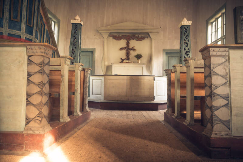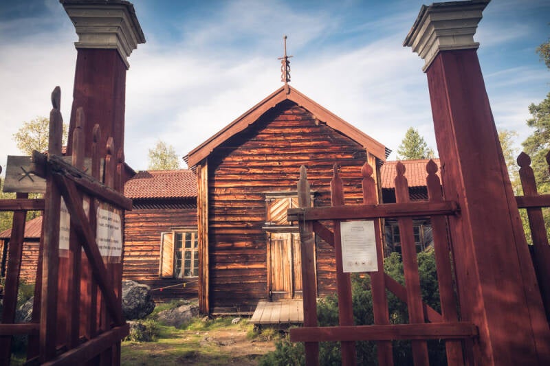 Am Ende der Strecke gelangt man zu einer großen Wiese am See Iso Pielpajärvi. Hier steht die schlichte Holzkirche, die 1760 erbaut wurde und zu den ältesten Gebäuden der Region zählt. Der Ort diente einst als Zentrum einer Wintersiedlung der Sámi. Heute werden hier an Ostern, zur Sommersonnenwende und bei Hochzeiten noch Gottesdienste abgehalten.