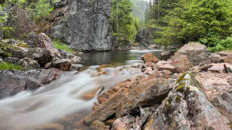 Der Gloppefossen, der höchste Wasserfall mit 230m im Setesdal, stand heute auf dem Programm. Ein sehr lautes und beeindruckendes Erlebnis, wir konnten bis an den unteren Rand des Wasserfalls wandern. Leider war das Wetter wieder regnerisch und kühl. Davon ließen wir uns aber nicht abhalten, auch noch durch den abfließenden Flußlauf barfuß durch zu waten. Sehr kalt 😃Coco war total aufgeregt von dem vielen Wasser und er rannte immer voraus und wollte uns den Weg zeigen. Diesmal ging es auf einen Campingplatz für zwei Nächte, es wurde Zeit zum Wäsche waschen.