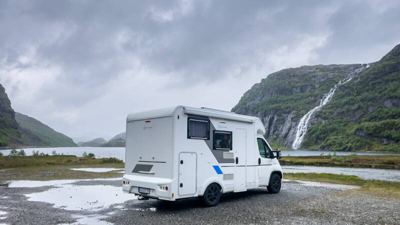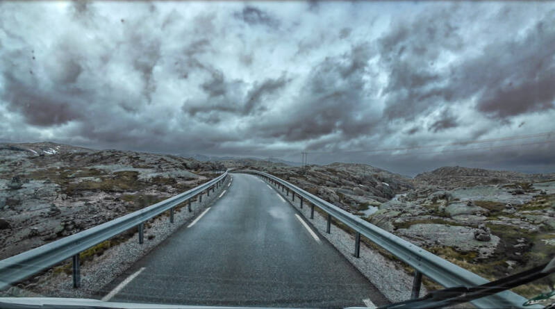 Da ein Orkantief auf die Westküste zurollt, suchten wir uns einen Stellplatz an der E39, Richtung Stavanger, geschützt im Hinterland um abzuwarten, wie es wird.