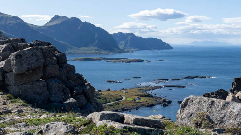 Heute fuhren wir ein kleines Stück zum Berg Vetten im Ort Bø. Die Aussicht von dort oben auf die Lofoten ist herrlich – man hat einen 360-Grad-Blick. Allerdings muss man sich die Aussicht erst verdienen: Immerhin sind 410 Höhenmeter zu überwinden auf 8 km.