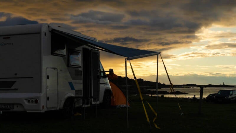 Coco rannte wie wild am Strand auf und ab und bellte ununterbrochen. Er kommt einfach nicht damit klar, wenn alle im Wasser sind. Zurück an unserem wunderschönen Stellplatz auf den Lofoten wusch Katrin noch einmal Wäsche, während wir ein atemberaubendes Schauspiel am Himmel bewunderten, nämlich als die Sonne sich langsam dem Horizont näherte. Traumhaft.