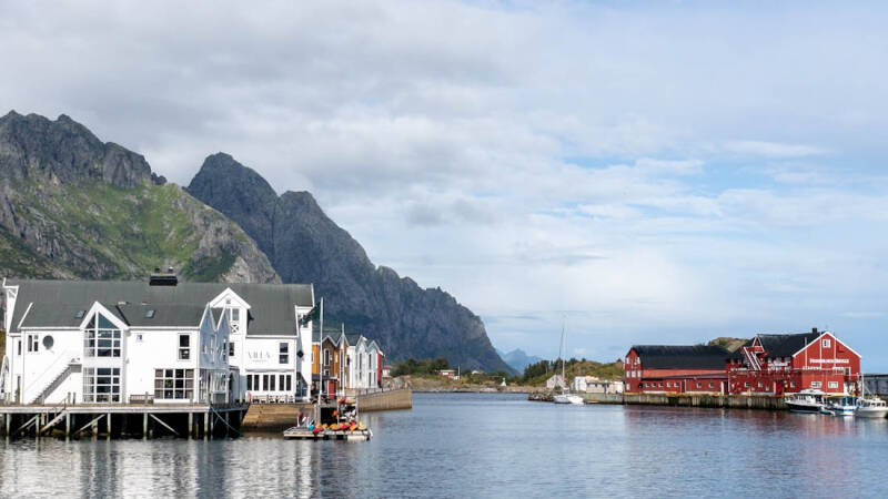 Danach entschieden wir uns gemeinsam, die Lofoten zu verlassen, da sich das Wetter absehbar nicht ändern würde. Auf dem Weg zurück zum Festland hatte Katrin noch die Idee, einen Abstecher in die Ortschaft Henningsvær zu machen. In Henningsvær gibt es den wohl berühmtesten Fußballplatz in Norwegen, wenn nicht sogar der Welt. Wie bestellt wurde das Wetter auf dieser Seite der Lofoten genau zu diesem Zeitpunkt plötzlich besser und sonnig. So schmecke uns auch das Eis wieder.