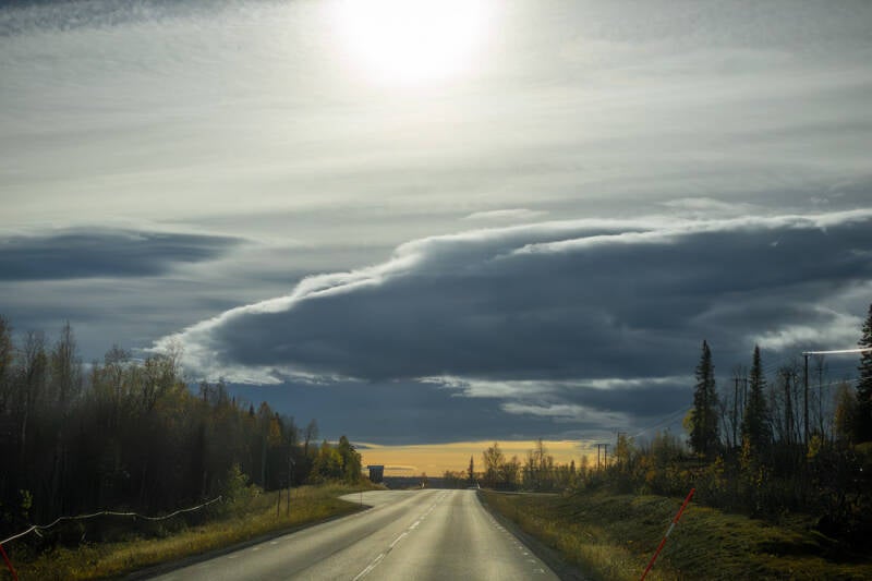 Auf dem Weg gab es eine faszinierende Farbstimmung am Himmel. Obwohl die Sonne noch recht hoch stand, sah der Horizont bereits wie in der Abenddämmerung aus.