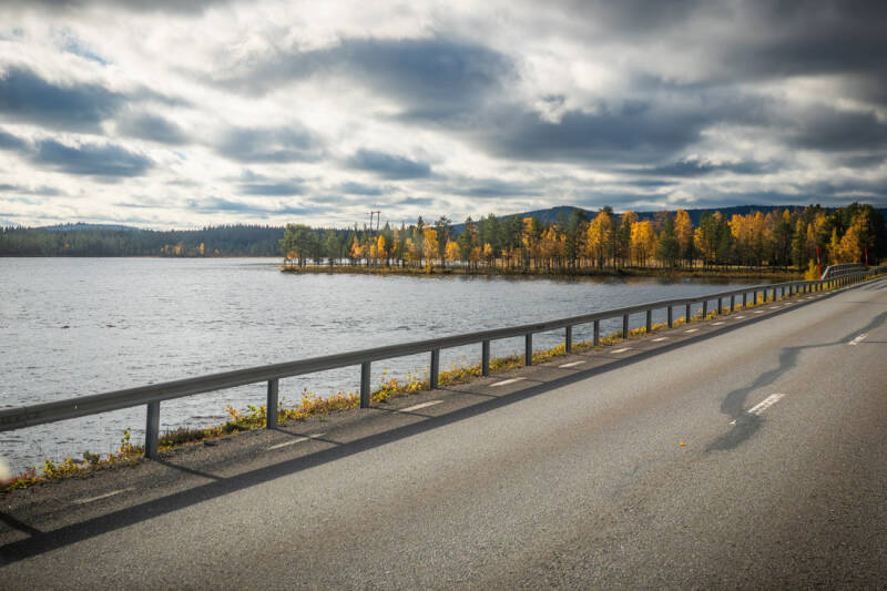 Der kurze Wanderweg führte uns entlang oberhalb der Klippen zu einer kleinen Schutzhütte mit Blick auf einen stillen Tümpel – perfekt für viele schöne Bilder und einen Drohnenflug. Der Kiefernwald und die unendliche Ruhe machten diesen Ort für uns zu einem echten, unerwarteten Highlight in Lappland. Ursprünglich wollten wir unser Nachtlager in der Nähe des Canyons aufschlagen, aber der Weg war mit einigen tiefen Pfützen gepflastert. Wir hatten die Befürchtung, dass wir bei zusätzlichem Regen in der Nacht nicht mehr herauskommen würden. Wir sind dann zu einem Parkplatz an der E45 gefahren und diese Entscheidung war goldrichtig. In der Nacht gab es am Himmel ein wahres Feuerwerk, und ich konnte tolle Bilder von den Polarlichtern machen.