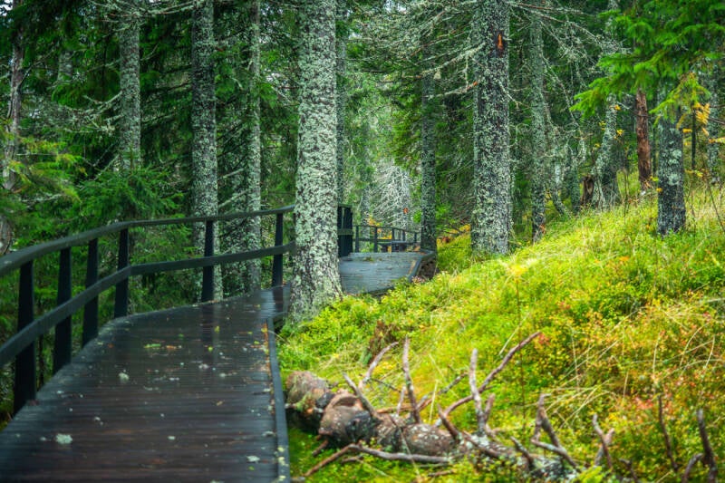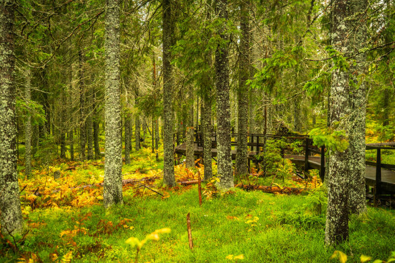 Heute ging es für uns wieder an die Küste, genauer gesagt, nach Osten zum Bottnischen Meerbusen. Der Herbst präsentierte sich dabei von seiner stürmischen, nassen und kalten Seite, was die Fahrt ziemlich anstrengend machte. Unser Ziel war der Skuleskogen Nationalpark. Er ist ein Teil des UNESCO-Weltnaturerbes Höga Kusten und demonstriert eindrucksvoll, wie die Landschaft durch die Eiszeit und die nachfolgende Landhebung geformt wurde. Der Regen hörte am späten Nachmittag auf, sodass wir noch einen kleinen Teil des Parks trocken erkunden konnten, jedenfalls trocken von oben.