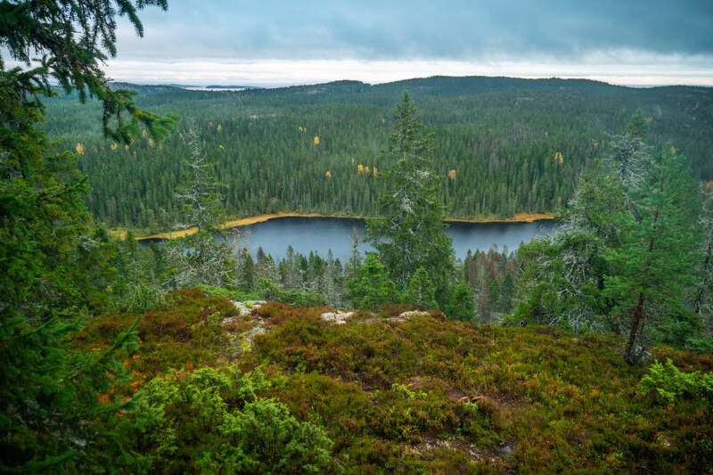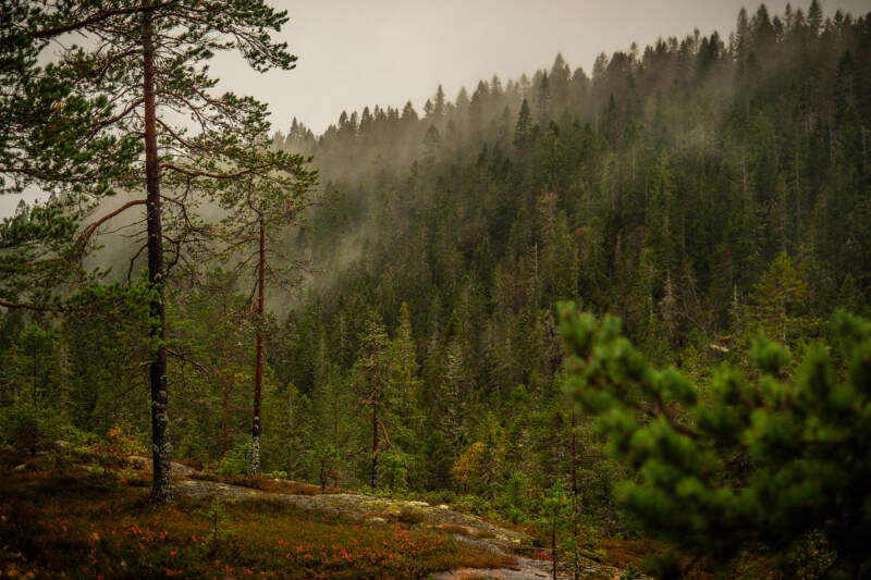 Die mystische Stimmung war einzigartig: Anders als in Lappland dominieren hier uralte Nadelbäume, und der Nebel waberte durch die Wälder – ein wirklich magischer Anblick. Besonders faszinierend war die tiefe Felsschlucht Slåttdalsskrevan, die von rötlichem Granit umgeben ist. Nach unserer kleinen Wanderung blieben wir für die Nacht direkt auf dem Parkplatz und genossen die absolute Ruhe.