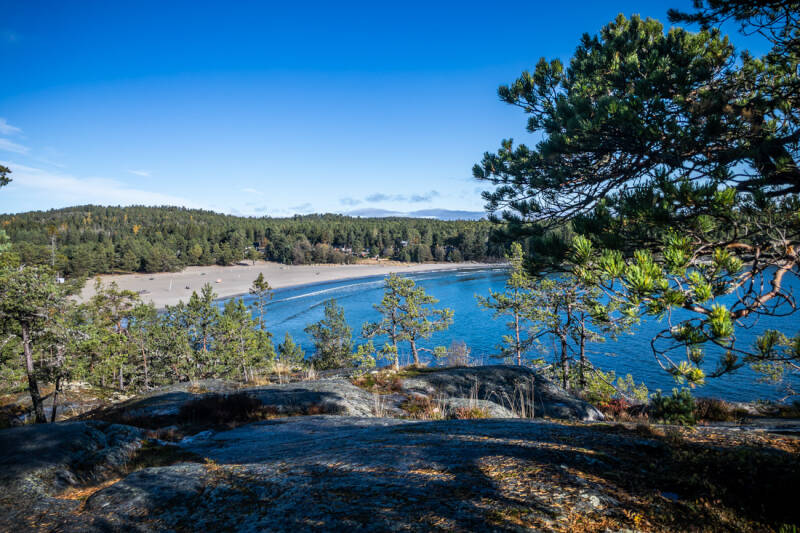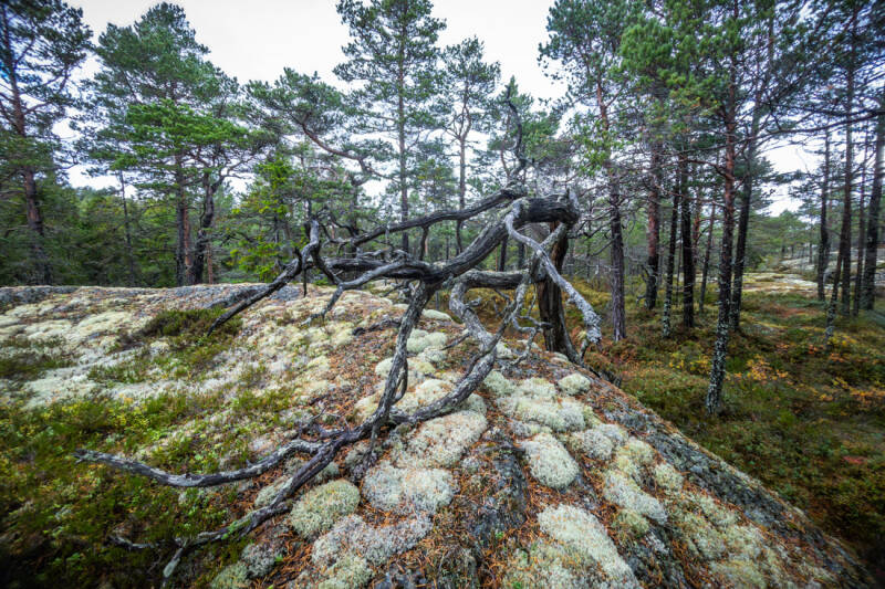 Wir haben uns entschieden, eine Nacht länger an unserem Übernachtungsplatz zu bleiben und den Tag für eine Wanderung im Naturreservat Smitingen-Härnöklubb zu nutzen. Dieses landschaftliche Highlight der Höga Kusten in Schweden ist bekannt für seine beeindruckenden geologischen Formationen. Obwohl wir direkt am beliebten Sandstrand Smitingens Havsbad standen, war die Wanderung anspruchsvoll: Der Weg war steinig und uneben, und durch den nächtlichen Regen waren Wurzeln und Felsen besonders rutschig. Wir mussten sogar mehrere Felder mit unterschiedlich großen, vom Gletscher rund geschliffenen Steinen überqueren. Trotz der Herausforderungen haben wir es ohne größere Blessuren geschafft und waren von der Wanderung tief beeindruckt.
